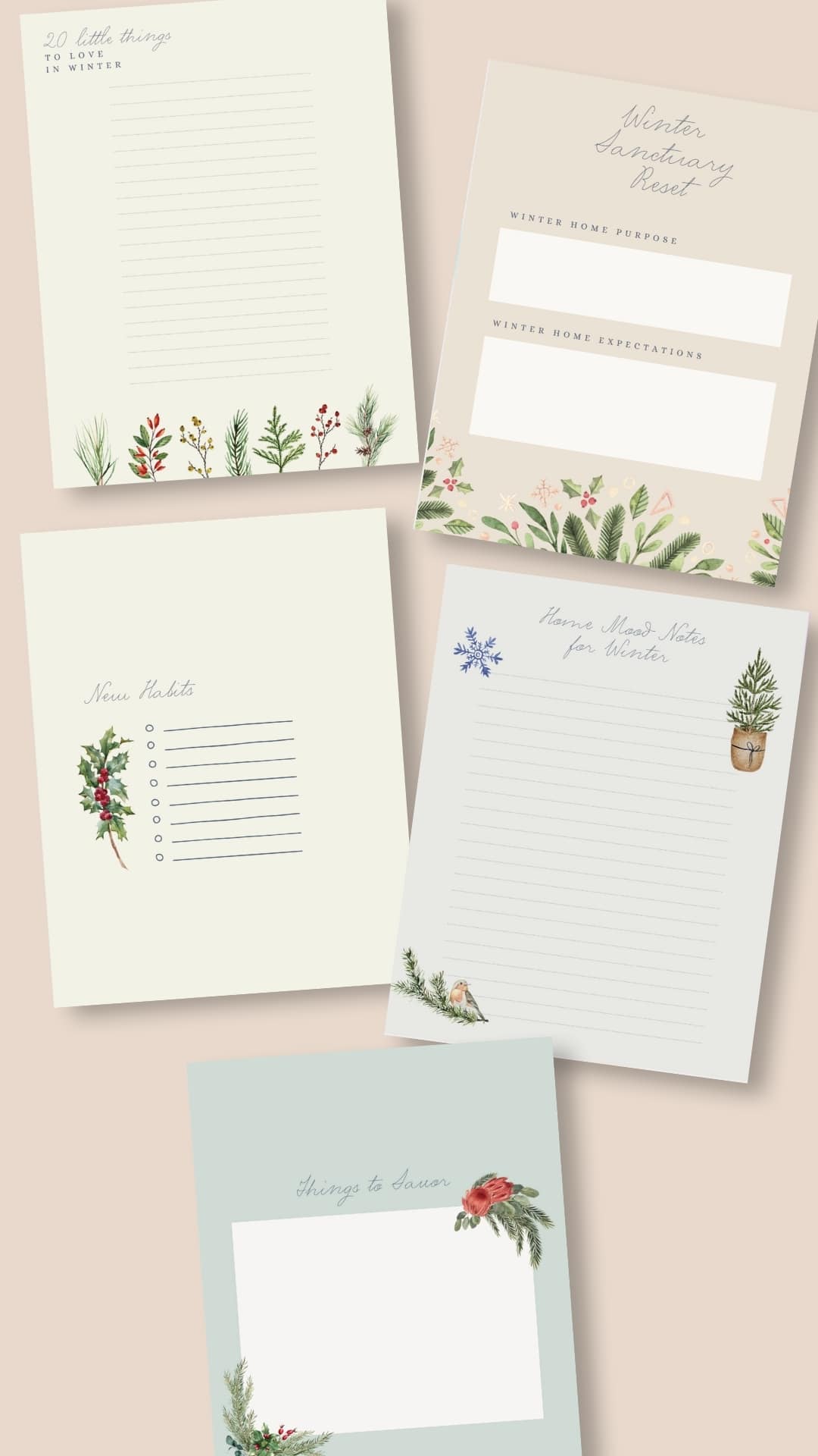 Enjoy this pack of 5 lovely winter printables to help you welcome the new season to your home. Best used alongside our Home Rhythms Mini Guide: Welcoming a New Season to Your Home.